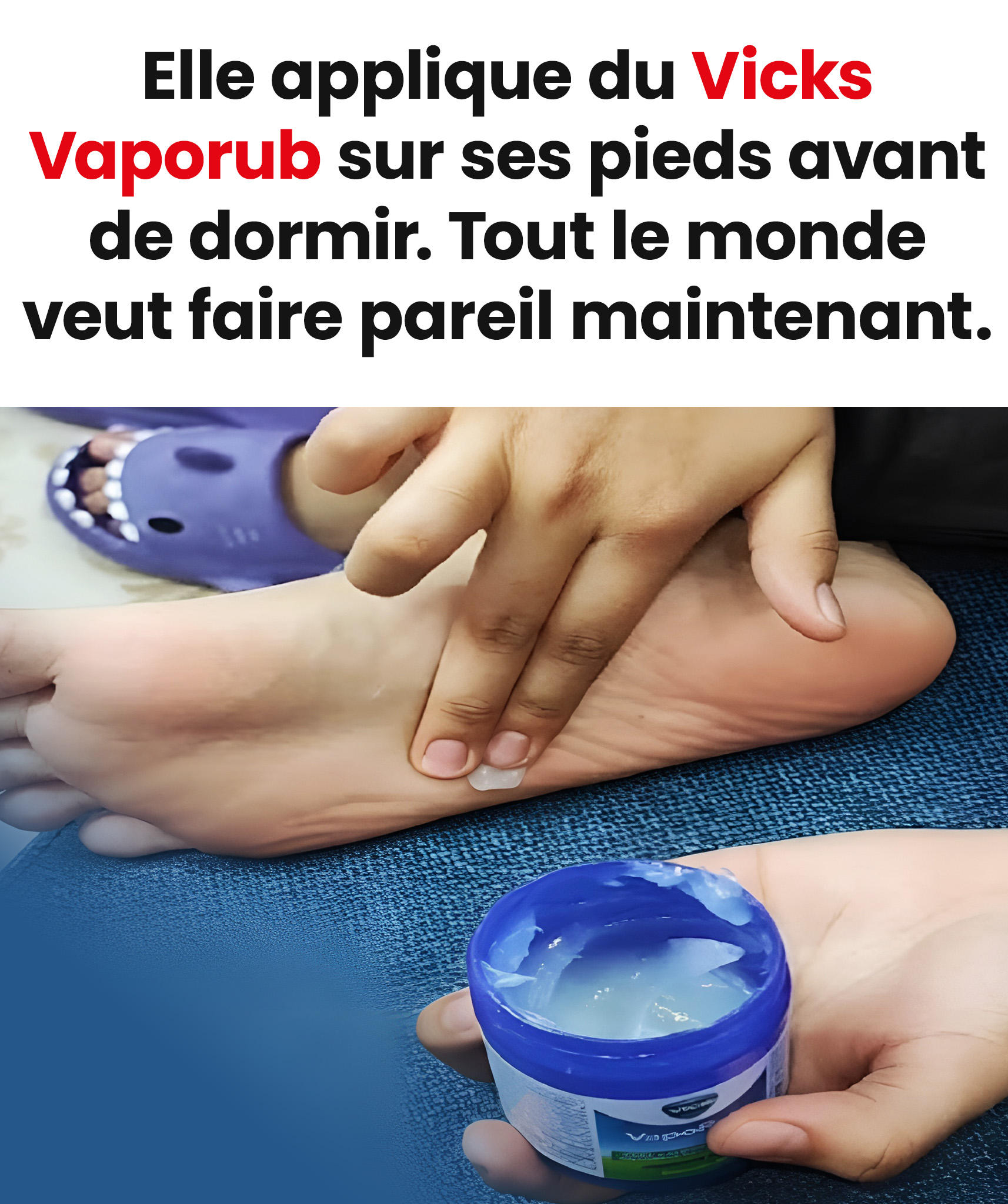 Avant d’aller au lit, enduisez vos pieds de Vicks, mettez des chaussettes, et laissez agir toute la nuit. Au réveil : des pieds plus doux, hydratés, et visiblement moins abîmés. À intégrer dans votre rituel beauté du soir !