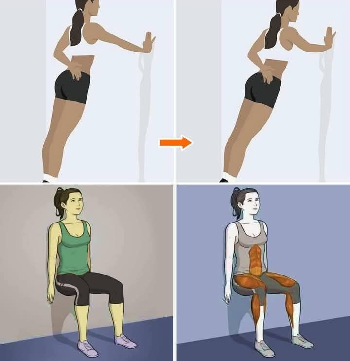 - Comment faire : Dos au mur, glissez en position assise. Rentrez le ventre en contractant les abdos.