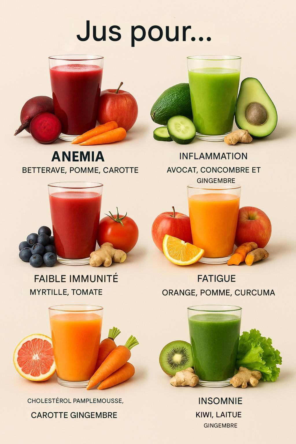 Voici un article complet et dynamique pour présenter ces 6 recettes de jus naturels, ciblant des maux courants :