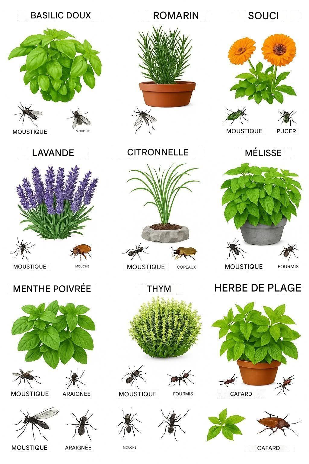De nombreuses herbes et fleurs non seulement éloignent les insectes, mais embellissent aussi votre jardin, améliorent la qualité de l’air et offrent des bienfaits culinaires ou médicinaux. Que vous habitiez une maison avec jardin, un balcon ou un petit appartement avec des pots sur le rebord de la fenêtre, vous pouvez cultiver ces plantes et profiter d’une solution sans produits chimiques pour protéger votre maison.