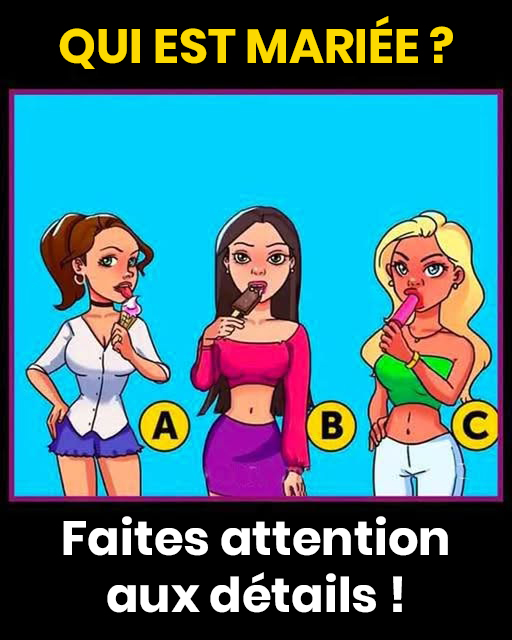Imaginez la scène : une agréable journée d’été, le soleil qui chauffe doucement la peau, une petite brise qui joue avec les cheveux… et trois femmes, toutes aussi stylées qu’élégantes, dégustant une glace en pleine rue. Rien d’inhabituel, en apparence. Mais cette image cache un indice bien précis. Un détail subtil qui, si vous savez bien observer, vous révélera un secret insoupçonné. Alors… la question est posée : laquelle de ces femmes est mariée ?