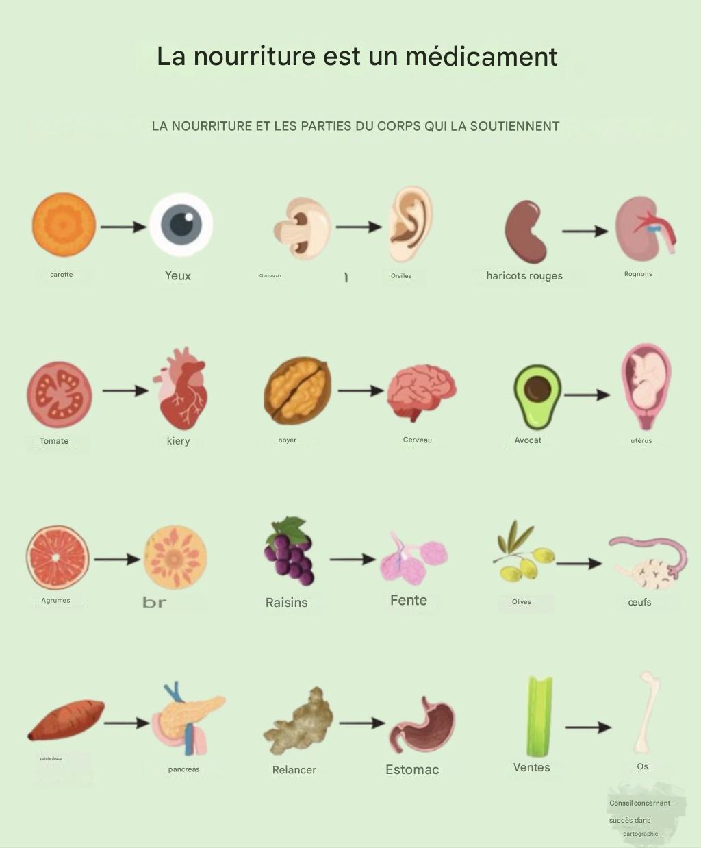 Aliments et parties du corps qu’ils soutiennent :