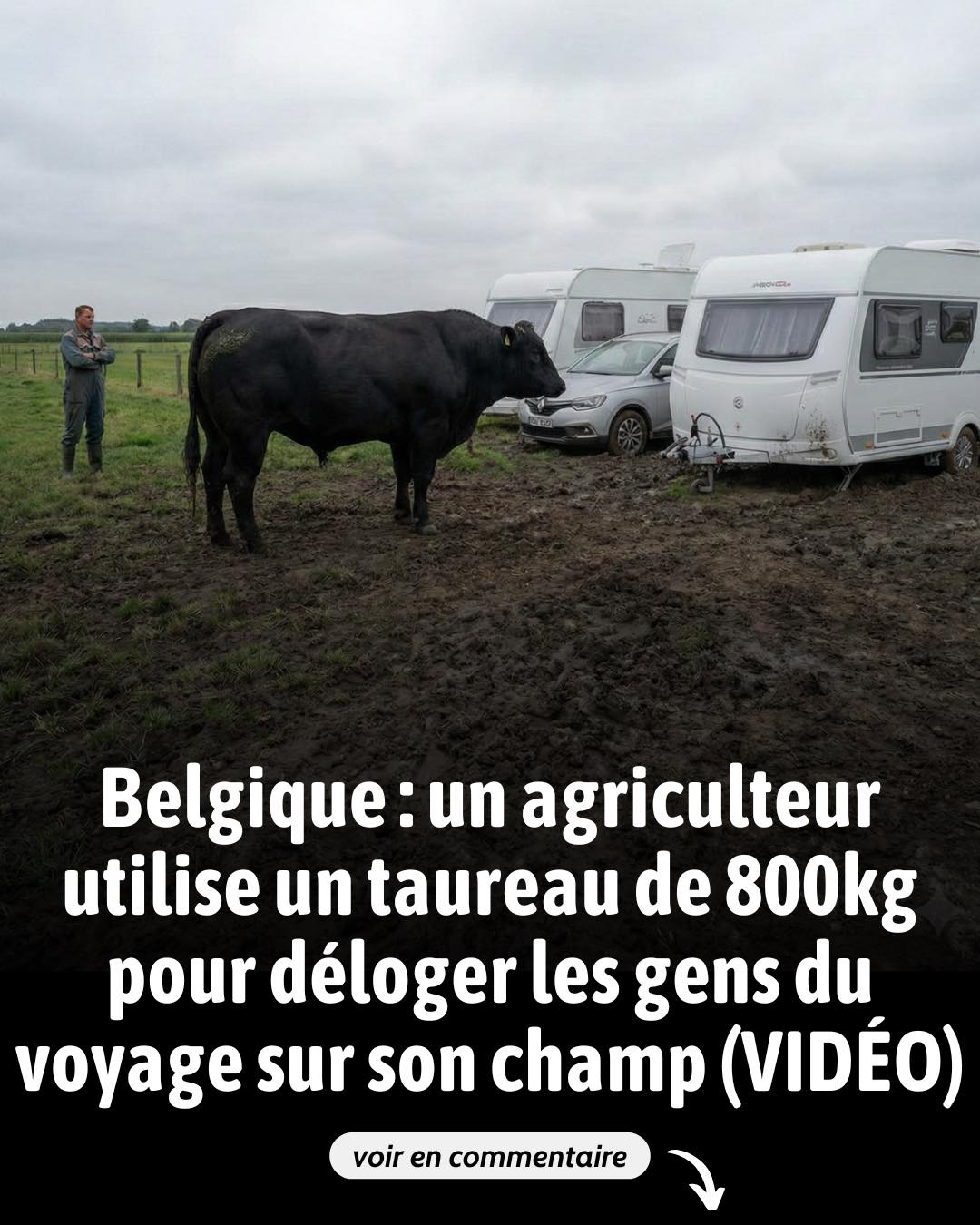 L’agriculteur assure avoir vérifié sa responsabilité civile : Ferdinand est chez lui. Il décrit l’animal comme « pas méchant », mais la simple vue d’un taureau de 800kg en liberté au milieu des caravanes suffit à créer un climat d’insécurité immédiat pour les occupants illégaux.