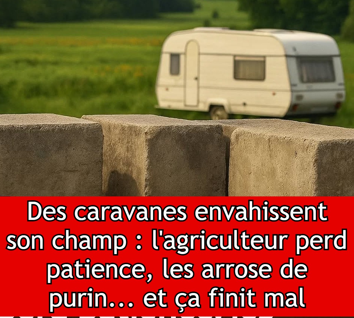 La solution qu’il a trouvée pour se débarrasser de ces occupants illégaux est originale, mais plutôt radicale. Ne pouvant pas les empêcher de partir, il a décidé de les enfermer sur son terrain. Il n’y est pas allé de main morte. Pour les bloquer, il a loué une grue et a déposé un bloc de béton de trois tonnes au milieu du chemin qui mène à son terrain. Les caravanes ne peuvent alors plus sortir.