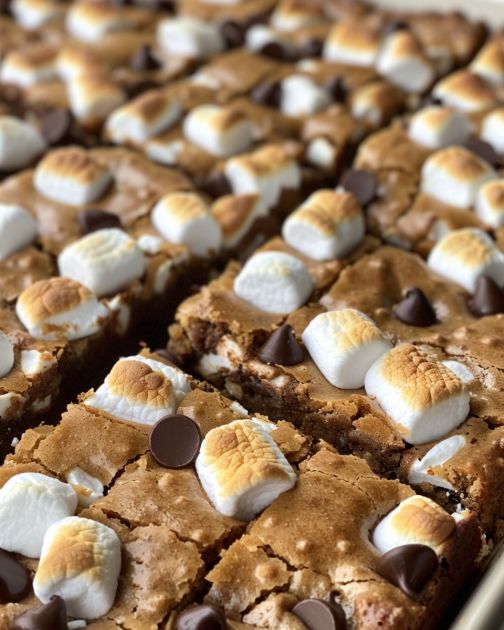 Les blondies S’mores combinent les saveurs nostalgiques des s’mores au feu de camp avec la commodité d’un biscuit en barre. Ce dessert marie la douceur gluante de la guimauve et le goût riche et chocolaté des s’mores traditionnels avec la note réconfortante de caramel d’un blondie classique. Parfaits lorsque vous avez envie de s’mores mais que vous n’avez pas accès à un feu ouvert, ces blondies réunissent le meilleur des deux mondes. Idéals pour les pique-niques, les repas-partage ou une simple friandise familiale, ils sont sûrs de plaire aux enfants et aux adultes.