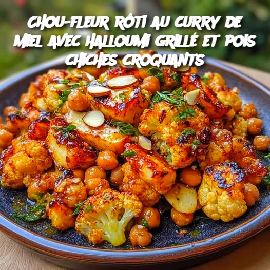 Chou-fleur rôti au curry de miel avec halloumi grillé et pois chiches croquants