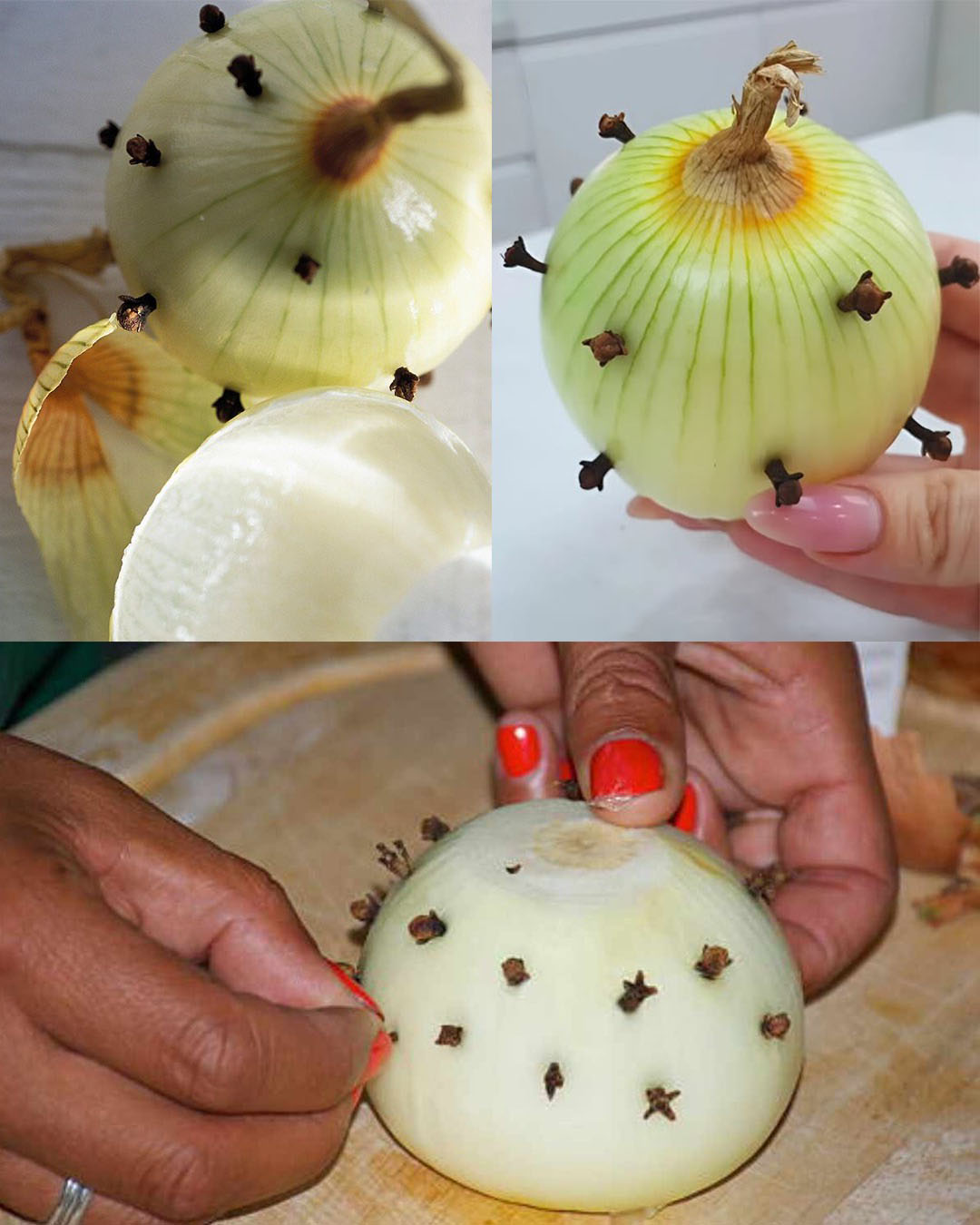 - En eau infusée : laissez tremper un oignon piqué de clous de girofle dans un grand verre d’eau toute la nuit et buvez au réveil.