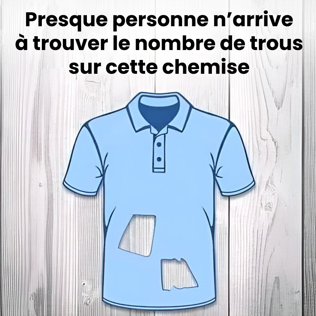 À première vue, tout semble parfaitement normal : une chemise classique, comme on en porte tous les jours. Pourtant, un détail intrigue, pousse à regarder de plus près, et même à douter de ce qu’on croyait acquis. Et si cette chemise cachait un secret méconnu ? Un détail visuel qui, mine de rien, met nos neurones au défi… Saurez-vous deviner combien de trous s’y trouvent vraiment ?
