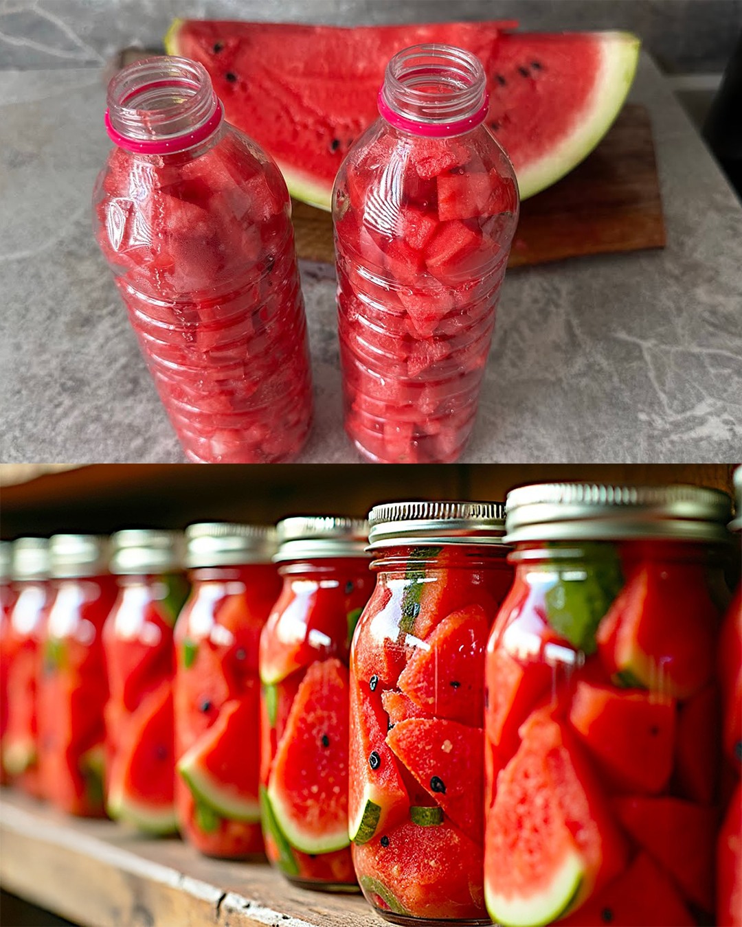 Voici deux façons simples et originales de conserver la pastèque : l’une qui conserve le fruit intact pour le grignotage, et l’autre qui le transforme en un jus sucré et acidulé. Ces deux recettes sont faites maison, pratiques et ne nécessitent que quelques ingrédients simples.