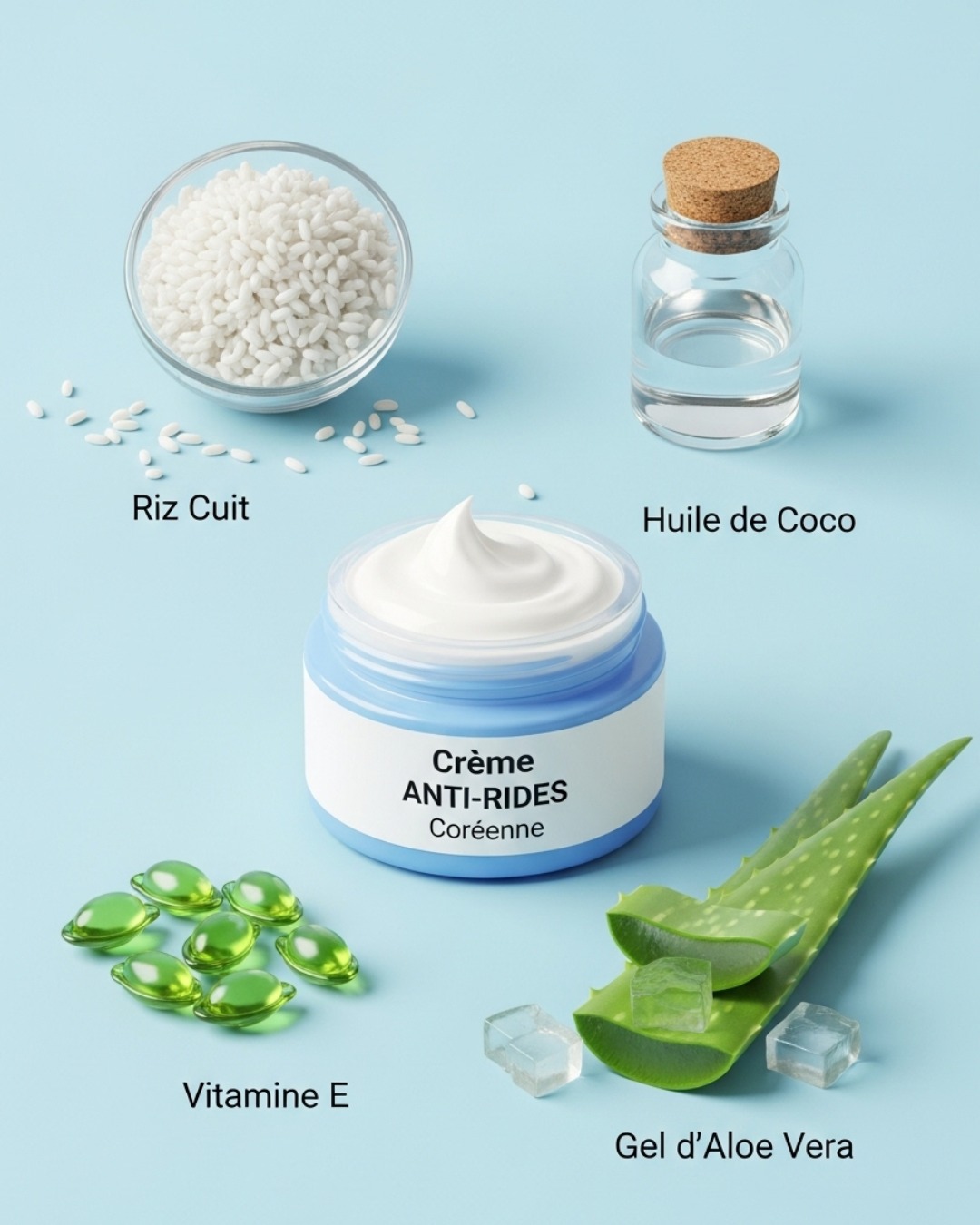 Avec le temps, la peau subit divers changements qui peuvent entraîner l’apparition de rides et de ridules. De nombreux produits cosmétiques promettent de lutter contre ces signes de vieillissement, mais beaucoup d’entre eux contiennent des ingrédients chimiques qui peuvent être irritants pour la peau. Dans cet article, nous allons explorer une recette simple et naturelle pour préparer une crème anti-rides maison, en utilisant des ingrédients bénéfiques comme le riz cuit, l’huile de coco, la vitamine E et le gel d’aloe vera.