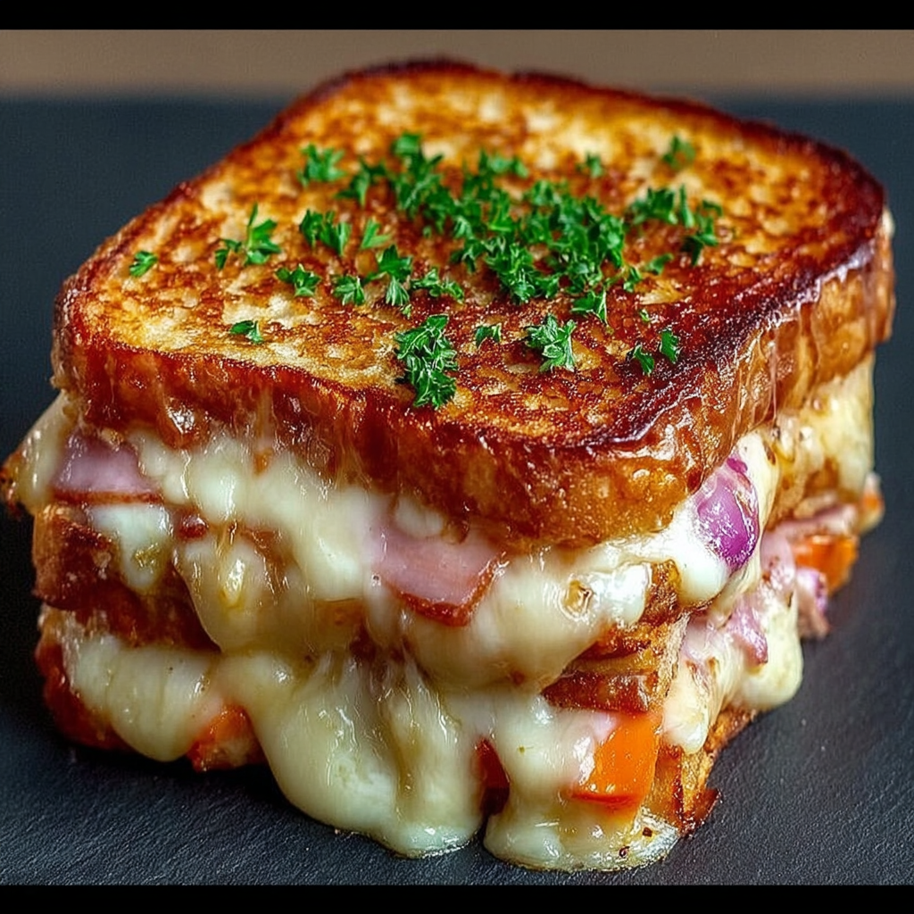 Un sandwich chaud irrésistible, avec une garniture généreuse et un fromage coulant, parfait pour un repas rapide mais ultra savoureux.