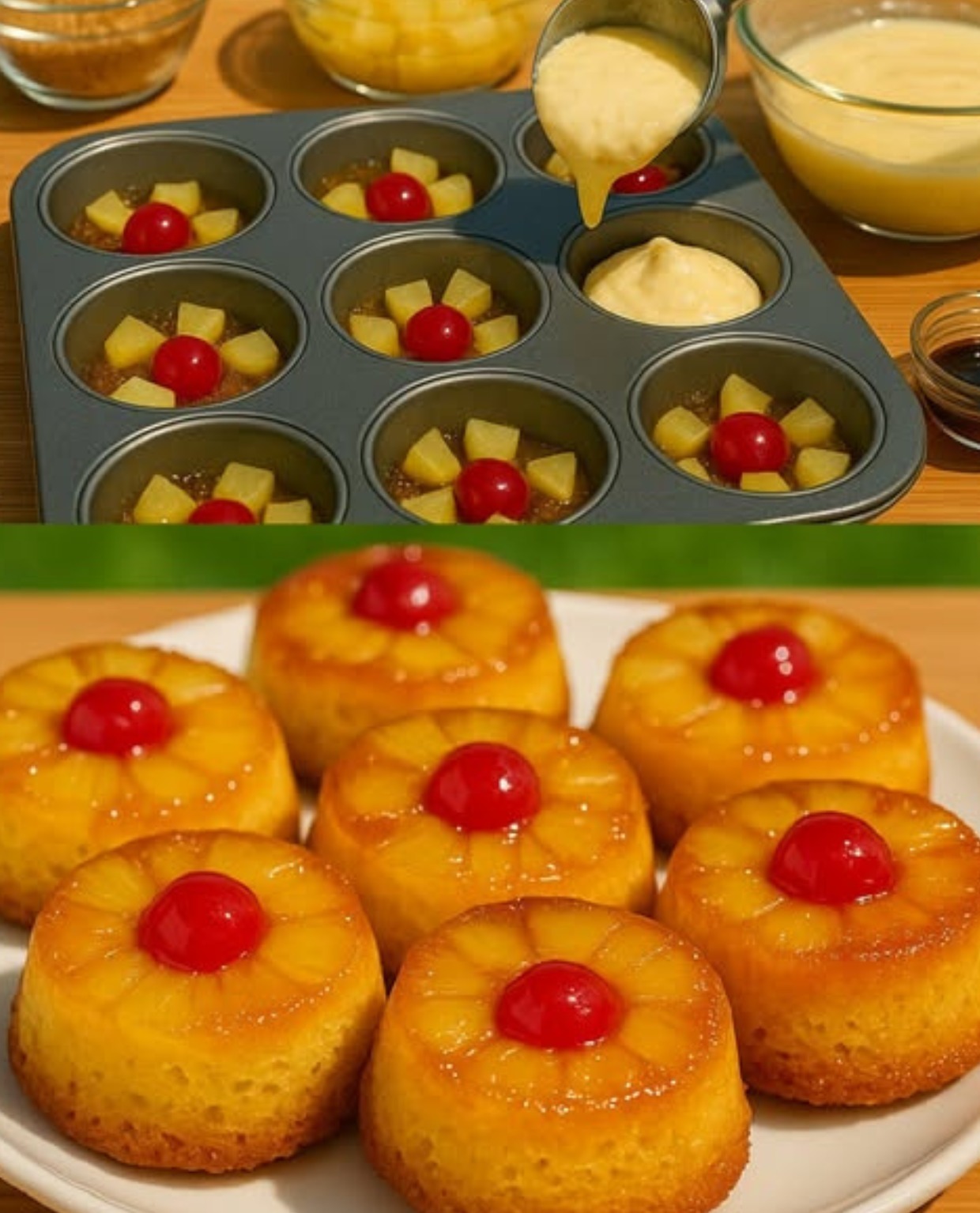 Ces cupcakes renversés à l’ananas reprennent les saveurs emblématiques du traditionnel gâteau renversé à l’ananas et les transforment en d’adorables gourmandises individuelles. Avec leur garniture à l’ananas caramélisé, leur glaçage à la cassonade et leur fondant à la vanille moelleux, ces cupcakes sont aussi délicieux à regarder qu’à déguster. Parfaits pour les fêtes, les réunions ou pour les gourmands tropicaux, ces cupcakes impressionneront tous vos convives. Préparez ce dessert fruité et amusant et savourez chaque bouchée !