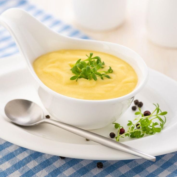 La sauce hollandaise** est une émulsion chaude à base de jaunes d’œufs, de beurre clarifié et de jus de citron. Elle accompagne traditionnellement des plats tels que les œufs Bénédicte, les asperges ou le poisson.
