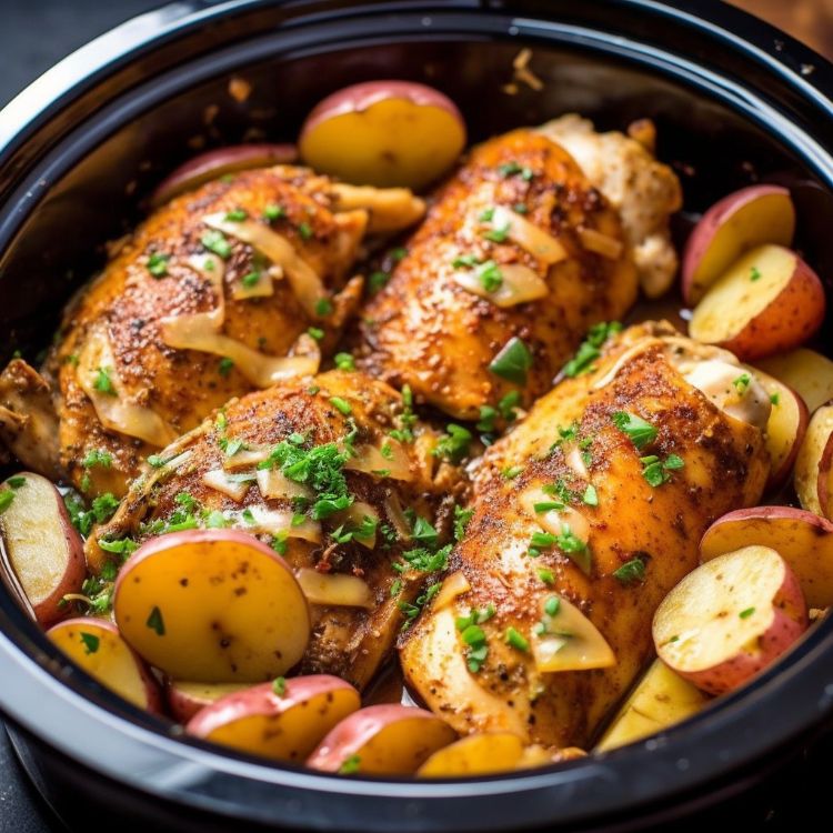 Déposez le poulet sur un lit de pommes de terre, puis versez cette sauce crémeuse pour un dîner imbattable