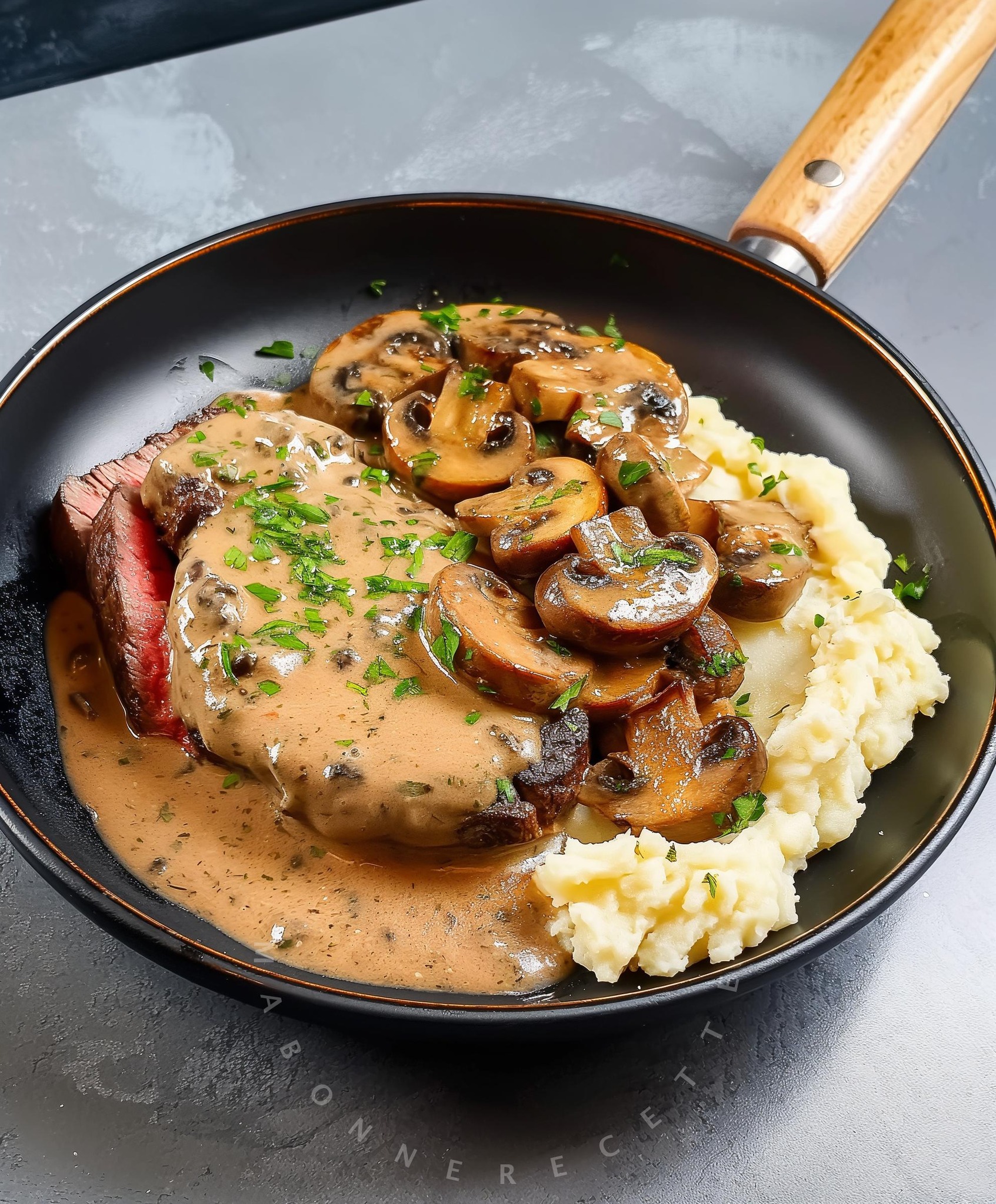 Filet de Bœuf Sauce Crémeuse aux Champignons et Purée de Pommes de Terre