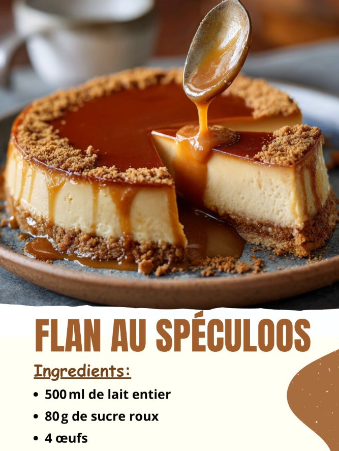 Flan au spéculoos September 12, 2025 by Alpha.K ADVERTISEMENT Flan au spéculoos Ingrédients : Pour le flan : 500 ml de lait entier 80 g de sucre roux 4 œufs ADVERTISEMENT Next→ Leave a Comment Cancel replyCommentName Email Website Save my name, email, and website in this browser for the next time I comment.