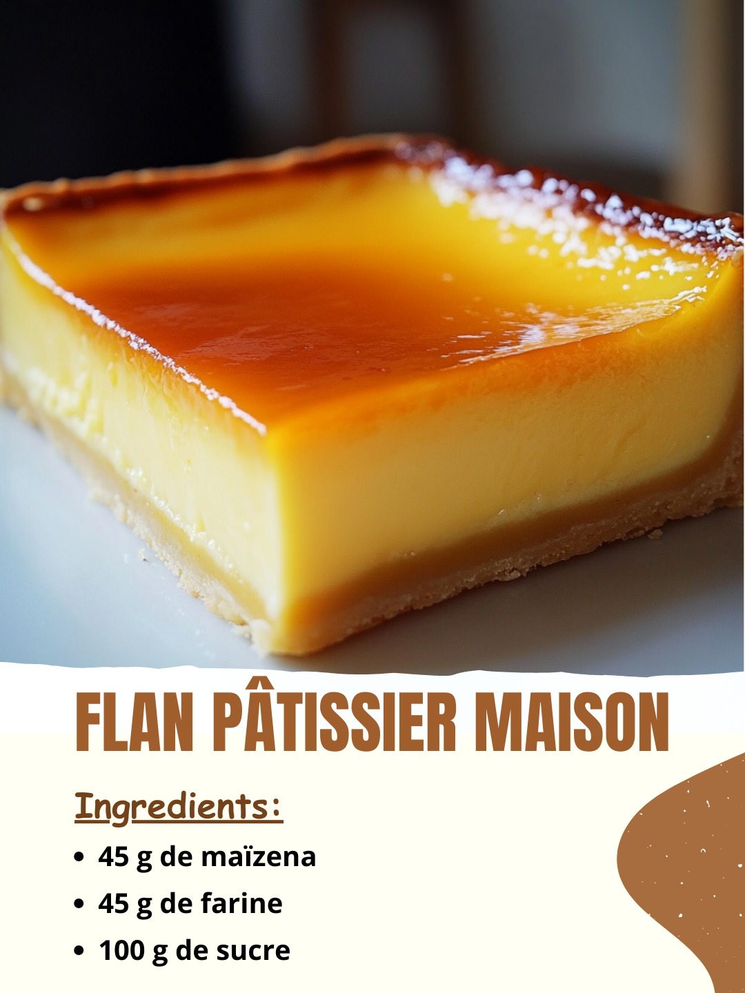 Flan pâtissier maison July 17, 2025 by Alpha.K ADVERTISEMENT Ingrédients: 45 g de maïzena 45 g de farine 100 g de sucre 4 œufs 1 litre de lait entier 1 c. à soupe d’extrait de vanille ADVERTISEMENT Next→ Leave a Comment Cancel replyCommentName Email Website Save my name, email, and website in this browser for the next time I comment.