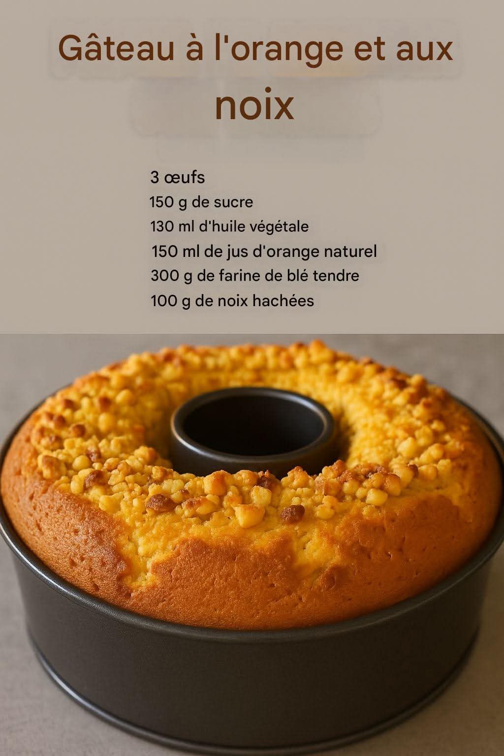 Pour préparer ce gâteau à l’orange et aux noix, il vous faut :