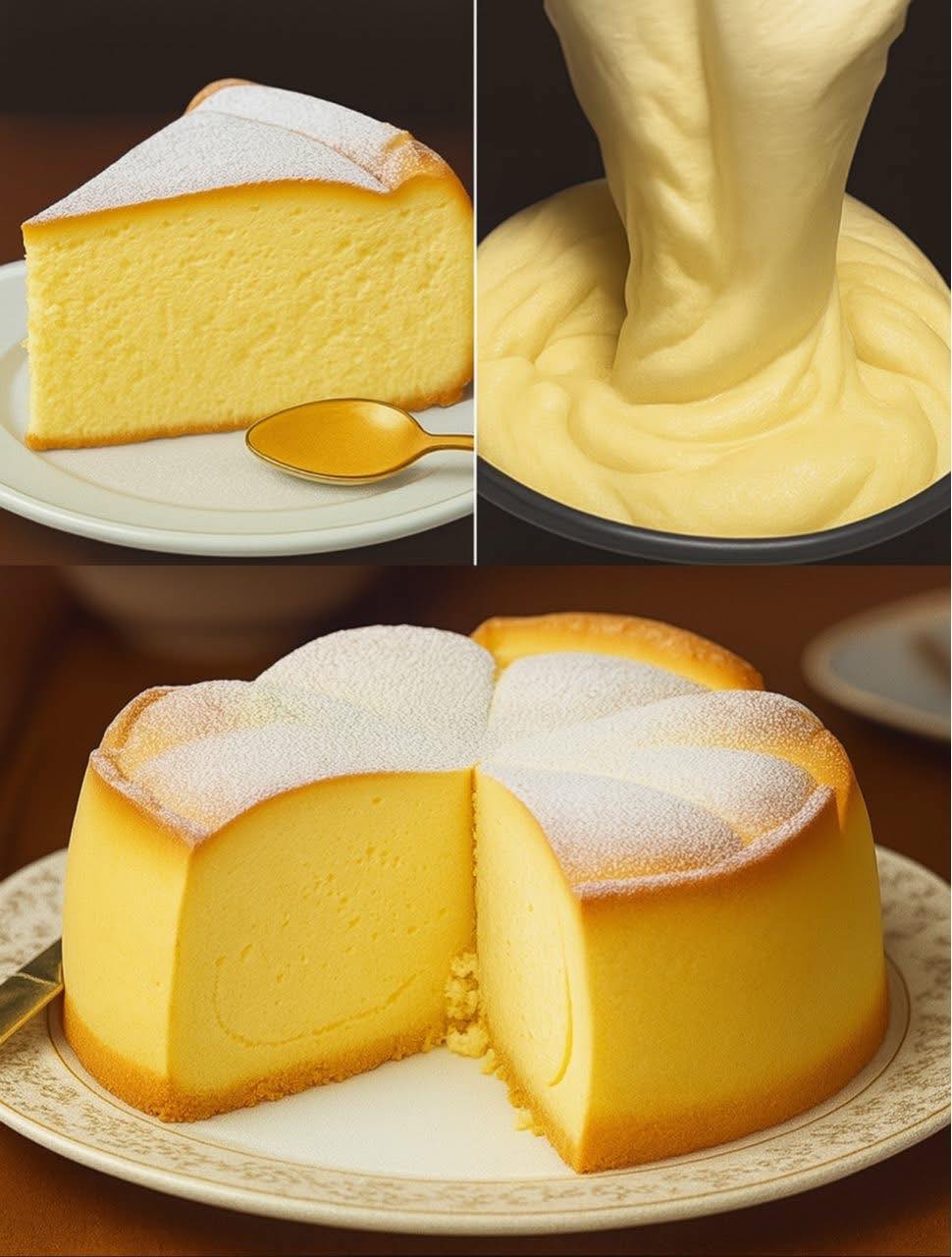 Ingrédients : 250 g de fromage frais (température ambiante) 50 g de beurre 100 ml de lait 6 œufs (blancs et jaunes séparés) 1 cuillère à café de jus de citron 100 g de sucre (divisé) 60 g de farine 20 g de fécule de maïs 1 cuillère à café d’extrait de vanille Sucre glace pour saupoudrer (facultatif) Préparation :