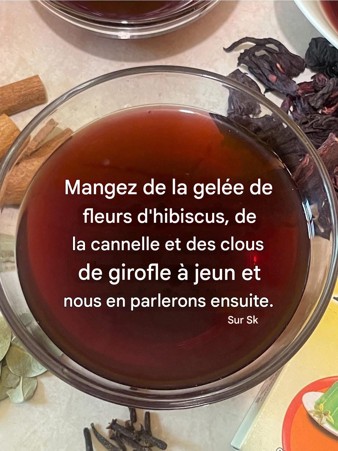 Bien sûr ! Voici une recette de délicieuse gelée d’hibiscus aux clous de girofle. L’association des fleurs d’hibiscus et de la touche aromatique du clou de girofle donne une gelée fraîche et savoureuse. Voici la recette étape par étape :