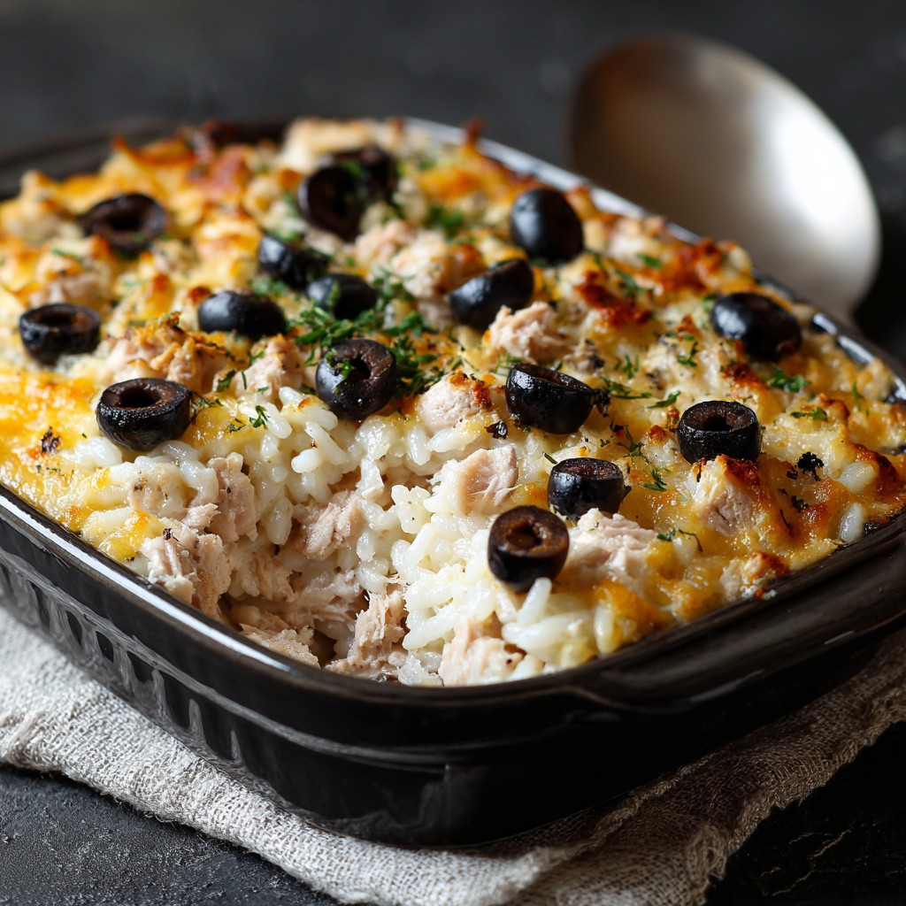 Gratin de riz au thon et aux olives noires : un plat savoureux et convivial