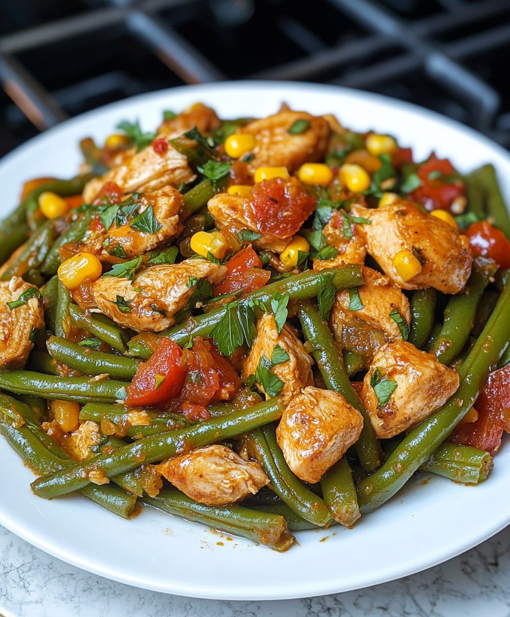 Les haricots verts apportent fraîcheur et légèreté, tout en gardant une texture légèrement croquante qui contraste parfaitement avec la tendreté du poulet. C’est un plat idéal pour allier plaisir et équilibre alimentaire.