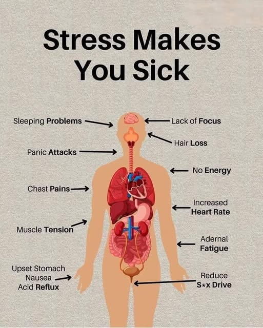 Prolonged stress reduces the body’s ability to fight infections, making you more prone to colds, flu, and inflammation.