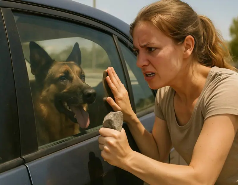 En traversant le parking brûlant, j’ai senti mon cœur se serrer. Dans une voiture fermée, vitres opaques à cause de la chaleur, un berger allemand était là. Assis à l’arrière, haletant, les yeux vitreux, la langue pendante… Il n’y avait pas besoin d’être vétérinaire pour comprendre que ce chien était en détresse.