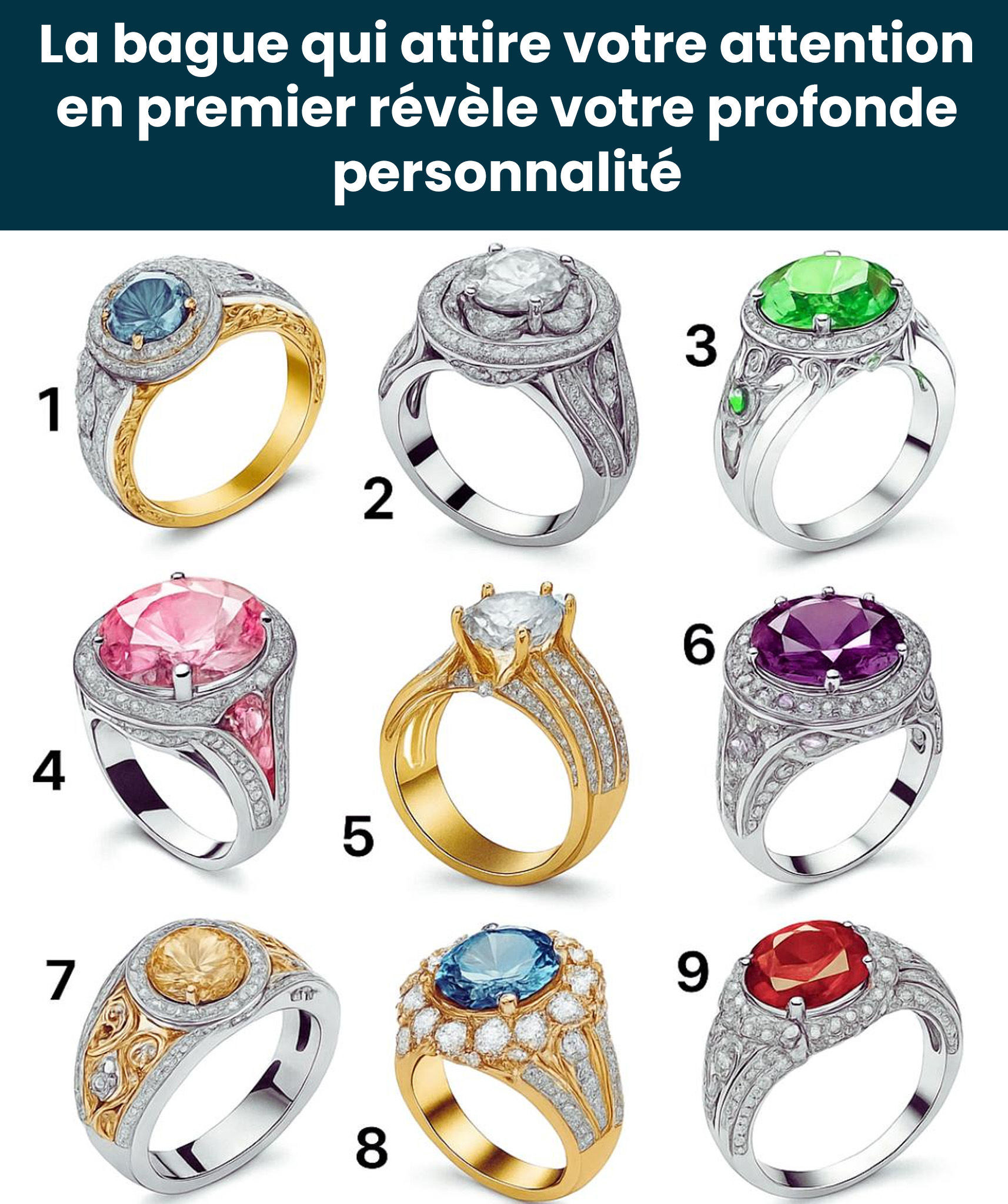 Imaginez : devant vous, neuf bagues sublimes, toutes différentes. Une seule capte immédiatement votre regard. Celle-là, elle vous appelle. Elle vous intrigue, vous séduit, presque comme si elle vous reconnaissait.