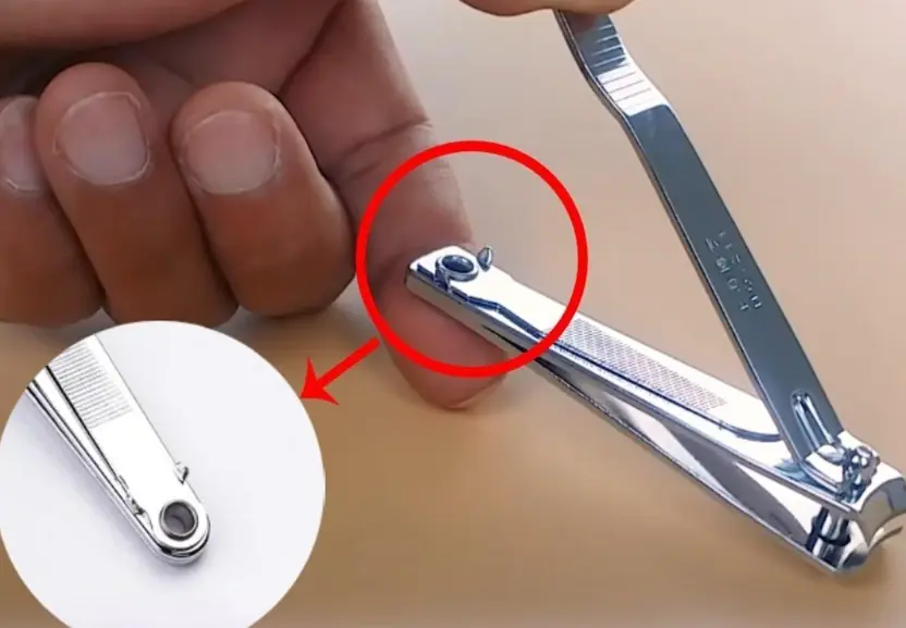 C’est là qu’intervient ce fameux petit trou : il sert à éliminer les débris coincés sans démonter votre coupe-ongles.