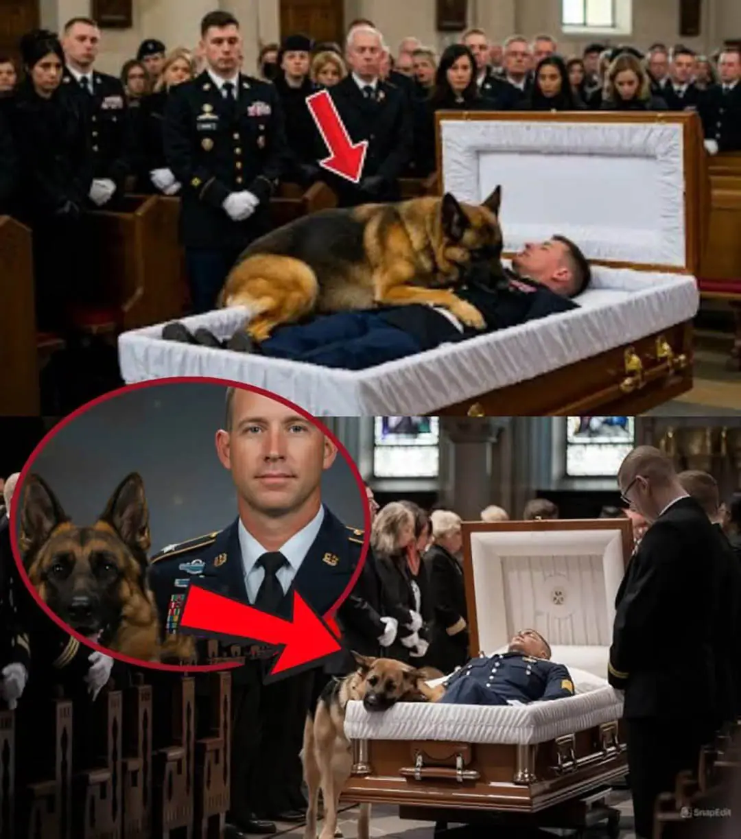 Tout au long des funérailles, Rex est resté digne, calme, presque stoïque. Le drapeau, les discours, la sonnerie funèbre : tout se déroulait avec respect. Mais lorsque l’heure fut venue de s’approcher du cercueil, tout a changé.