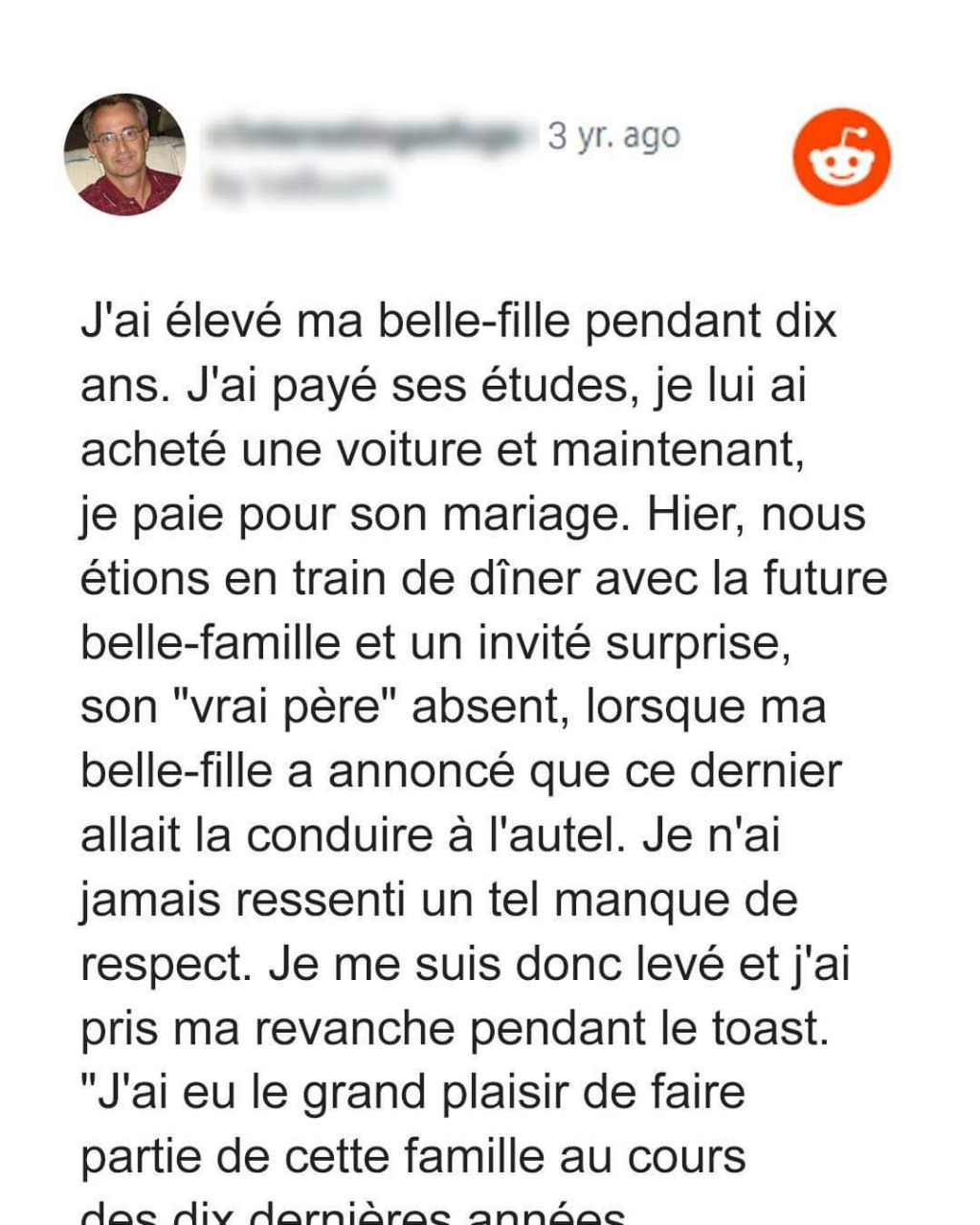 Au fur et à mesure que les invités prenaient place, le murmure des conversations remplissait l’air, une mélodie douce mais persistante de festivités et d’anticipation. L’homme, tenant fermement son discours dans une main, sentait son cœur battre à tout rompre. Lorsque son moment arriva, il se leva, son regard balayant la foule jusqu’à ce qu’il rencontre celui de sa belle-fille. “Chers amis et famille,” commença-t-il, sa voix trahissant une légère trembleur. “Je tiens à vous parler aujourd’hui non seulement en tant que beau-père mais en tant qu’homme qui a vu cette jeune femme grandir.