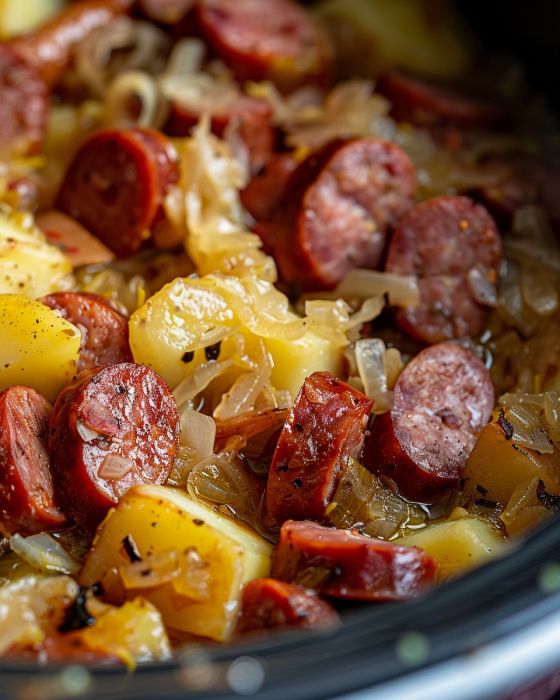 Saucisse à la mijoteuse avec choucroute et pommes de terre