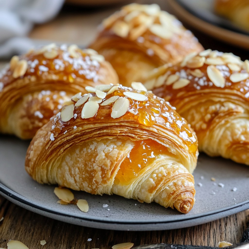 mini-croissants à la confiture d’abricots et amandes effilées