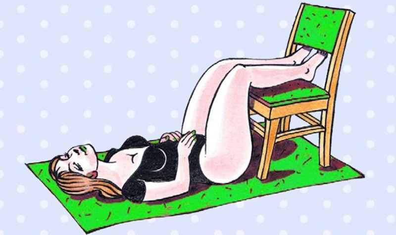 Idéal après une journée stressante ! Installez-vous sur le sol, les jambes posées sur une chaise. Cette position réduit la pression sur la colonne vertébrale et favorise une meilleure circulation sanguine. Restez ainsi quelques minutes en respirant profondément.