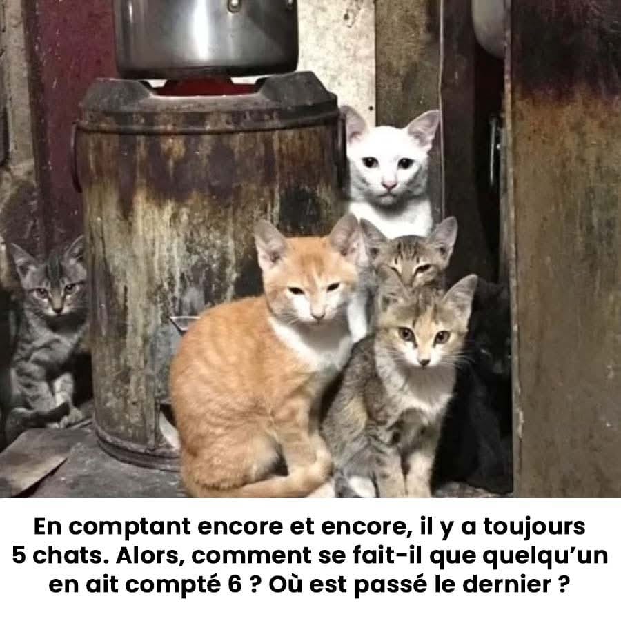 Les casse-têtes visuels ont le don de piquer notre curiosité et de tester notre sens de l’observation. Dans cette énigme, il s’agit de repérer le 6ᵉ chat caché dans une image. Si vous ne l’avez pas encore trouvé, pas de panique : il est astucieusement dissimulé !