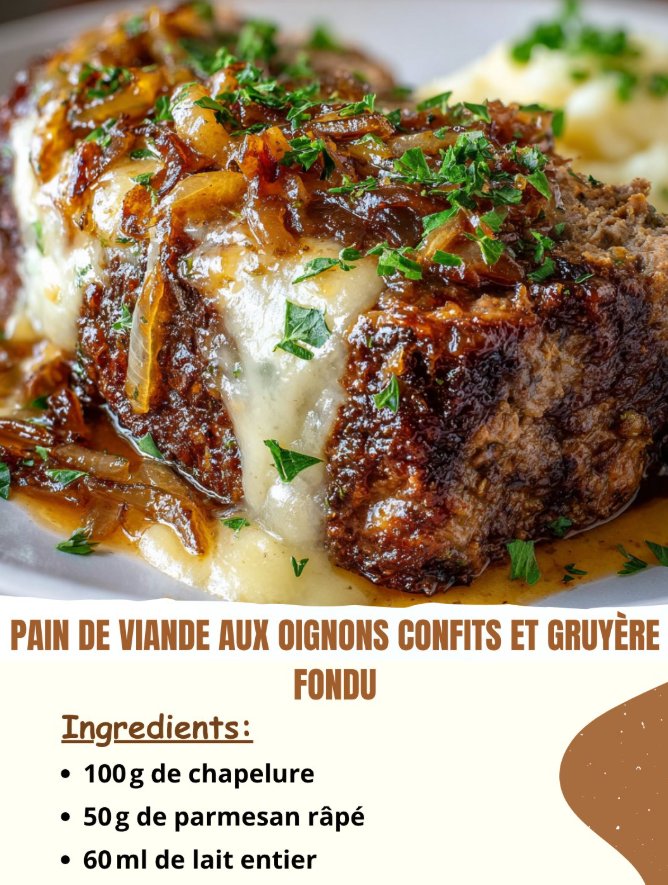 Pain de Viande aux Oignons Confits et Gruyère Fondu