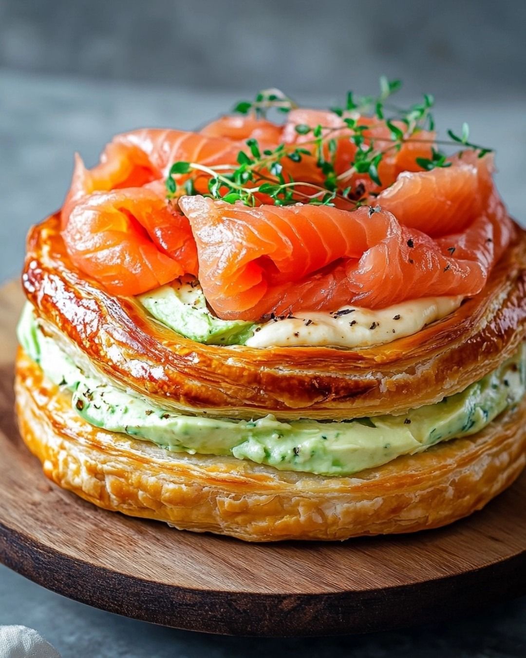 Ce Paris-Brest revisité en version salée est une vraie pépite pour surprendre vos invités ! La pâte à choux légère accueille une crème onctueuse à l’avocat et au fromage frais, avec des tranches de saumon écossais pour un équilibre parfait entre fraîcheur et gourmandise. Un régal aussi beau que délicieux !