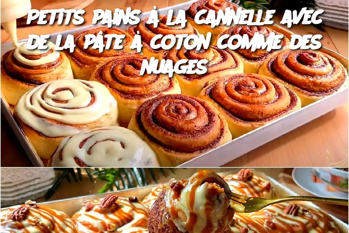 Petits pains à la cannelle avec de la pâte à coton comme des nuages