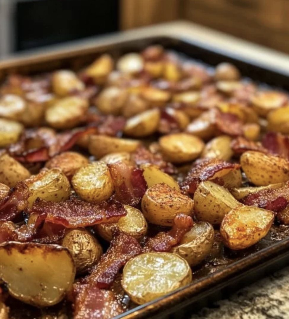 Pommes de terre croustillantes et bacon sur plaque