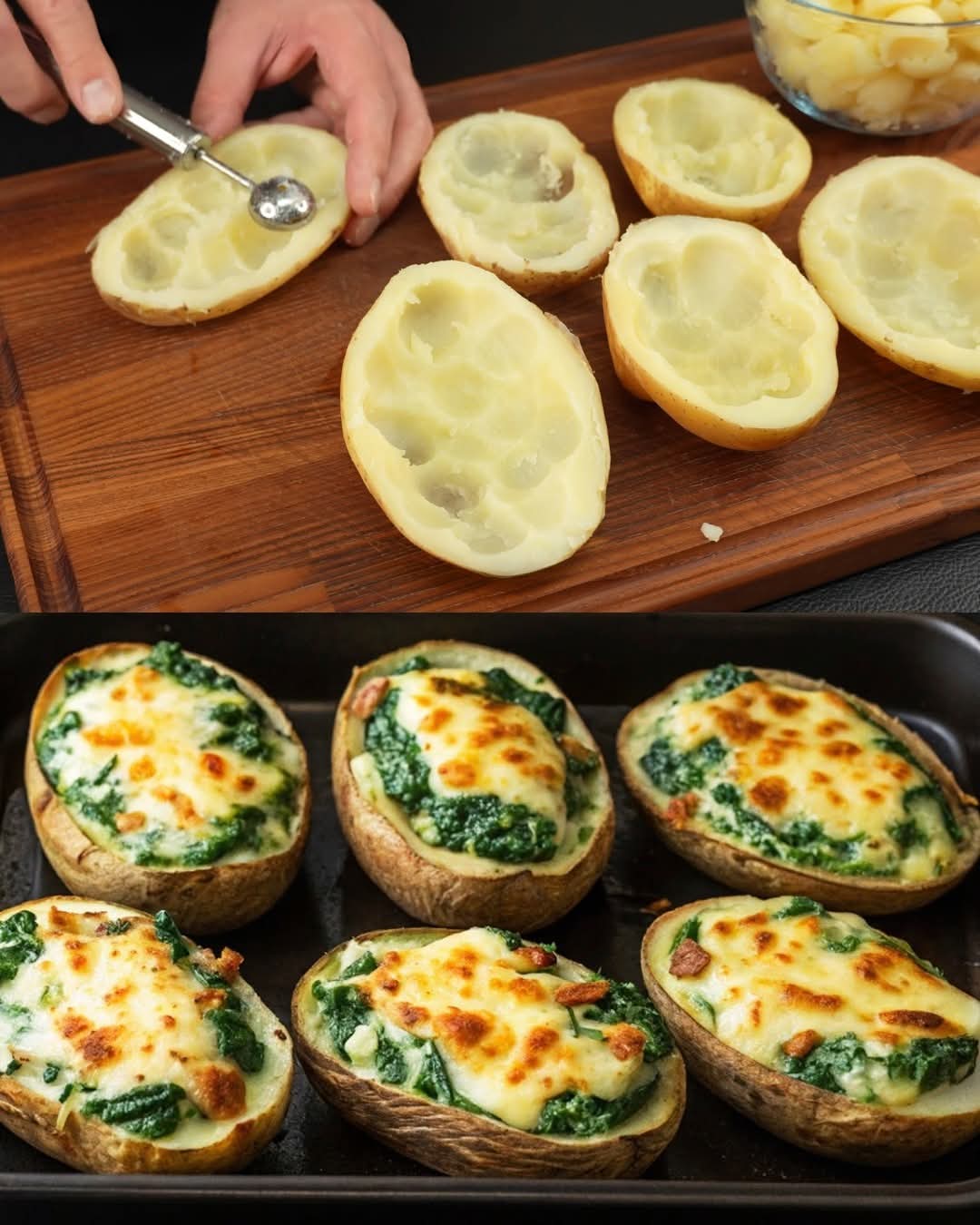 Pommes de terre farcies aux épinards et au fromage cuites deux fois : un plat réconfortant et gourmand à tester sans tarder 🥔🧀