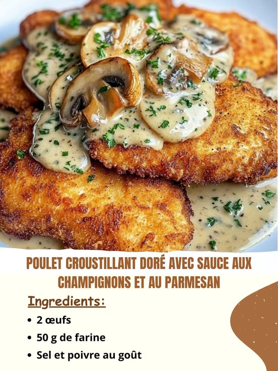 Poulet Croustillant Doré avec Sauce aux Champignons et au Parmesan