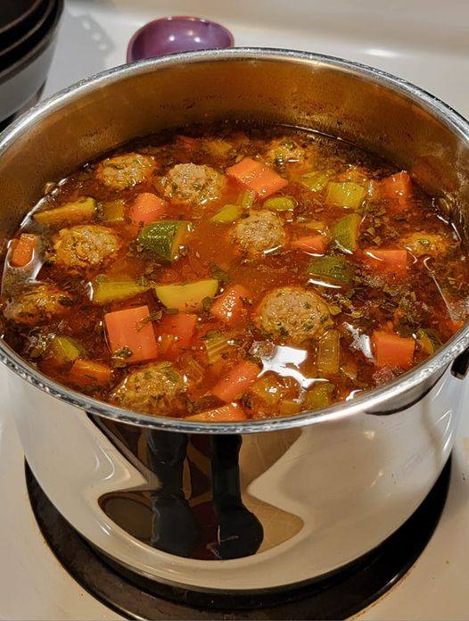 Cuisson lente et à feu doux : Laissez la soupe mijoter doucement pour mélanger les saveurs et garantir des boulettes de viande et des légumes tendres.