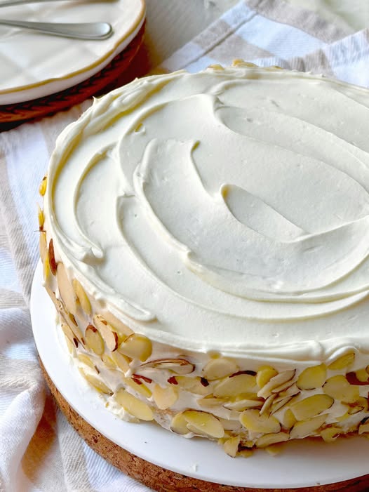 Ce gâteau aux amandes des Alpes est un dessert vraiment spécial. Il est tendre et moelleux, subtilement parfumé à l’amande et à la vanille, et agrémenté d’un somptueux glaçage à la ganache fouettée au chocolat blanc. Garni d’amandes effilées, c’est un gâteau parfaitement équilibré et raffiné, parfait pour les fêtes ou pour un moment gourmand.