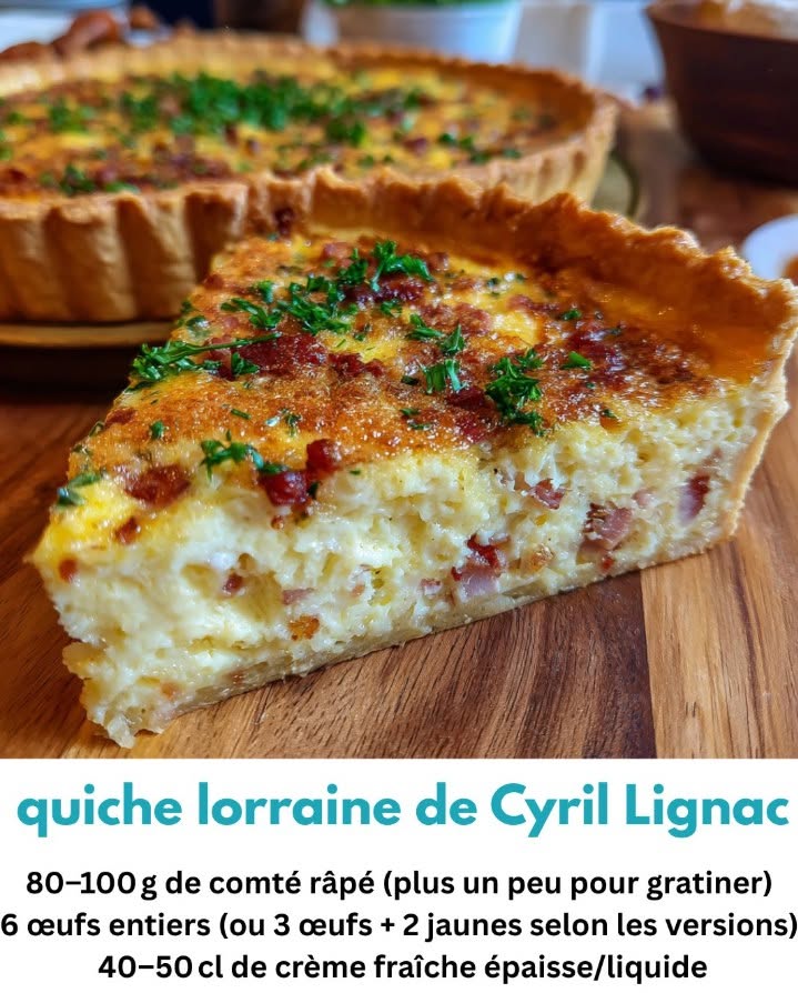 Quiche Lorraine August 31, 2025 by Alpha.K ADVERTISEMENT Quiche Lorraine Ingrédients (pour 4 à 6 personnes) 1 pâte brisée 200 g de lardons fumés 3 œufs 20 cl de crème fraîche épaisse ADVERTISEMENT Next→ Leave a Comment Cancel replyCommentName Email Website Save my name, email, and website in this browser for the next time I comment.