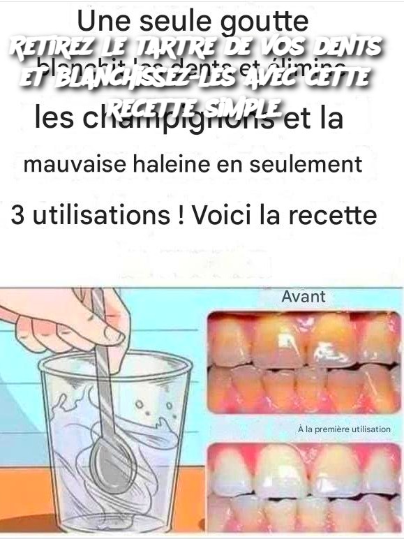 Il existe de nombreuses causes de tartre, l’une des principales étant une mauvaise hygiène bucco-dentaire chez de nombreuses personnes, ce qui, associé à la consommation d’aliments riches en sel, constitue le scénario idéal pour son apparition. Aujourd’hui, nous allons vous montrer une recette avec laquelle vous pouvez éliminer le tartre et blanchir vos dents de manière naturelle, sans avoir à aller chez le dentiste ou à dépenser beaucoup d’argent pour des procédures coûteuses.