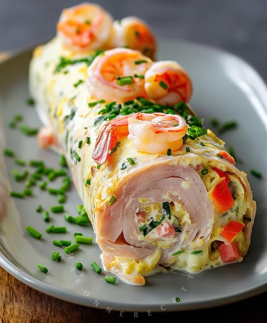 Roulé de Volaille aux Crevettes et Légumes Croquants
