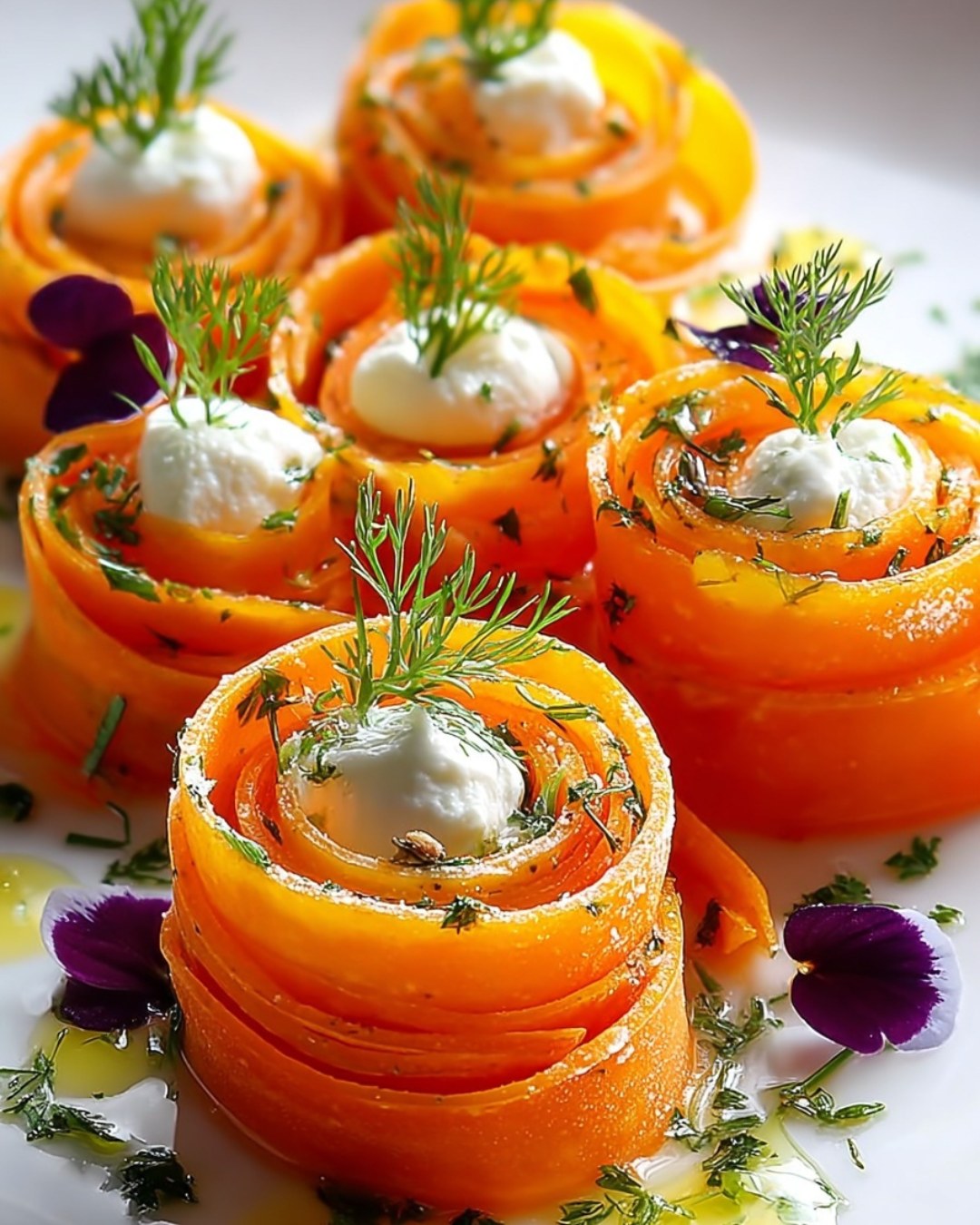 Envie d’une recette légère, colorée et pleine de saveurs pour commencer un repas en beauté ? Les rubans de carottes farcis à la ricotta sont une idée parfaite pour allier fraîcheur, douceur et élégance dans votre assiette. Faciles à préparer, ces petites bouchées raffinées séduiront vos convives par leur simplicité et leur délicatesse.