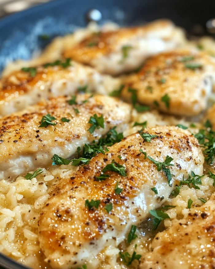 Poulet Scampi avec riz à l’ail et au parmesan
