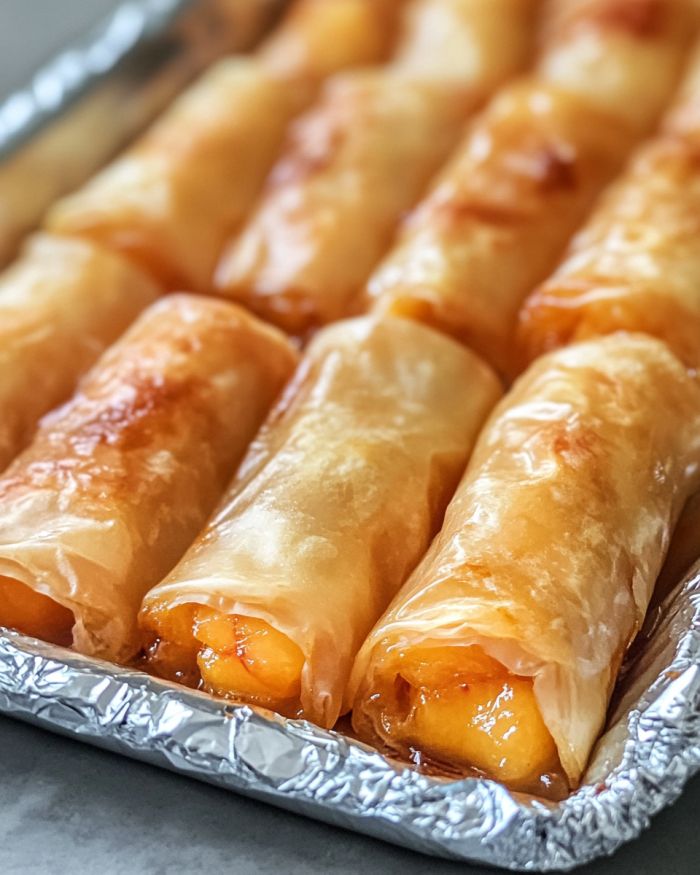 Rouleaux de papier de riz à la tarte aux pêches cuites au four